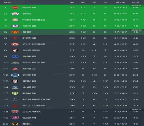 随着曼城21,蓝军11升第4,英超最新排名出炉!阿斯顿维拉排第3